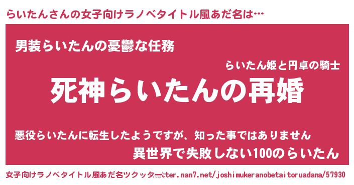 | ヘコむあだ名 | 『らいたん(笑)』『らいにー』 |