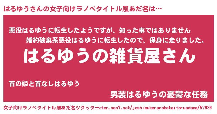 | 男性向けラノベタイトル風あだ名 | 『やはりはるゆうの青春ラブコメはまちがっている 』 |
