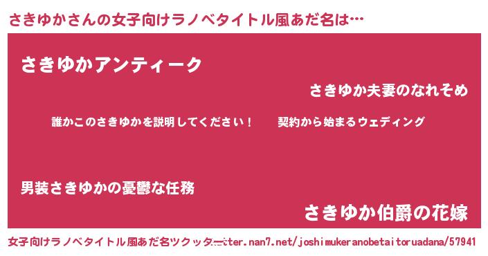 | 男性向けラノベタイトル風あだ名 | 『サキユカアートオンライン』 |