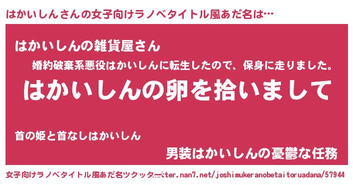 | 萌えアニメ | 主人公(はかいしん)のあだ名『 はかちん』 |