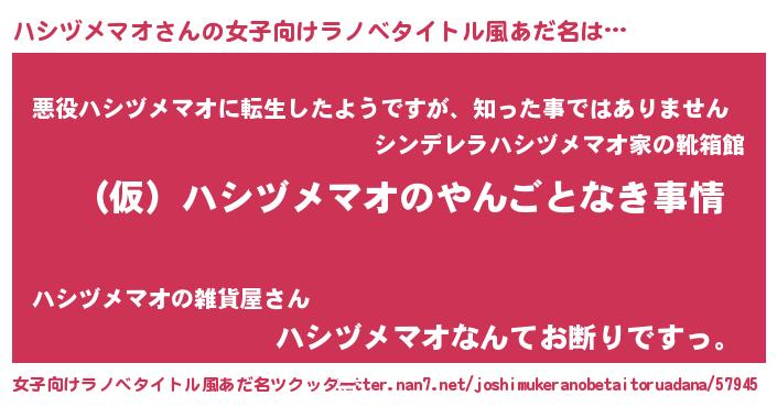 | ファンタジー風あだ名 | 『ハシフェル』『ヴァルハシーナ』 |