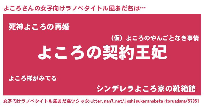 | 男性向けラノベタイトル風あだ名 | 『よころという概念が存在しない退屈な世界 』 |