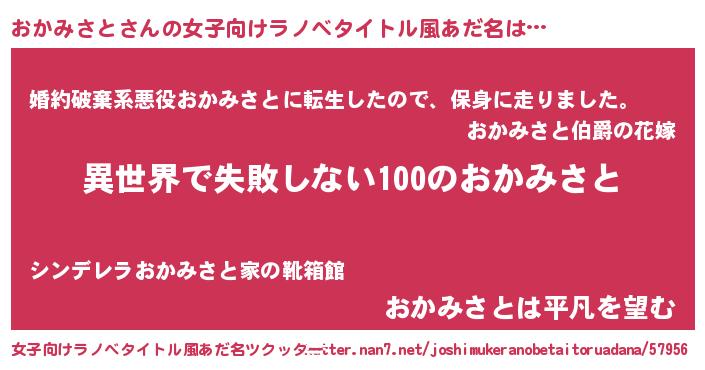 | 胡散臭い通販商品みたいなあだ名 | 『絶対に幸福をもたらす水素水…その名も「おかみさと」』 |