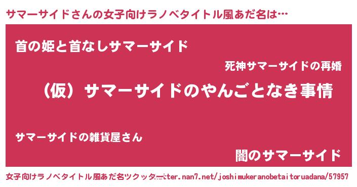 | 男性向けラノベタイトル風あだ名 | 『サマーサイドの憂鬱』 |