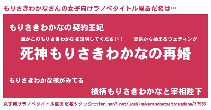 | 男性向けラノベタイトル風あだ名 | 『ノーゲーム・ノーモリサキワカナ』 |