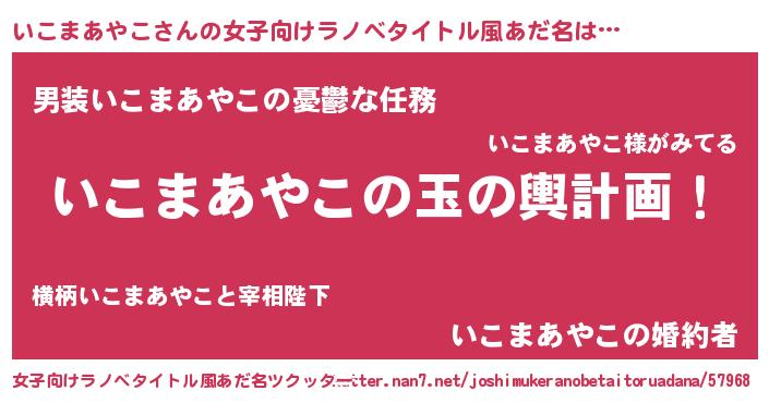 | 男性向けラノベタイトル風あだ名 | 『転生したらいこまあやこだった件』 |