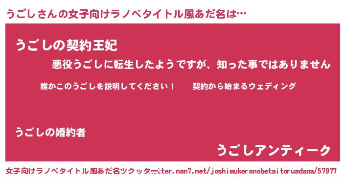 | 男性向けラノベタイトル風あだ名 | 『ウゴシアートオンライン』 |