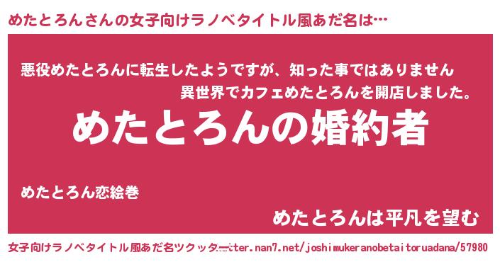 | 胡散臭い通販商品みたいなあだ名 | 『運命の人と巡り会える高級そうな壺…その名も「めたとろん」』 |
