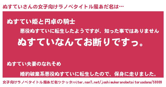 | ヘコむあだ名 | 『ぬすにゅー』『なまこ酢』 |