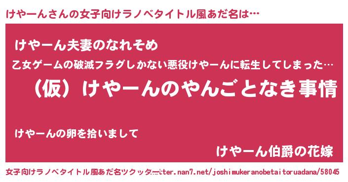 | 2回繰り返すあだ名 | 『けやけや』『ぶすぶす』『けけやや』 |