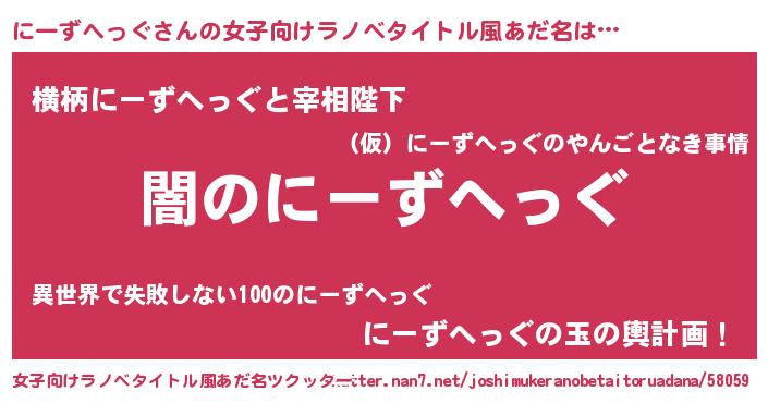 | 意味不明あだ名 | 『自称にーずへっぐ』 |