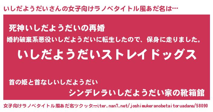 | 男性向けラノベタイトル風あだ名 | 『Re:いしだようだいから始める異世界生活』 |