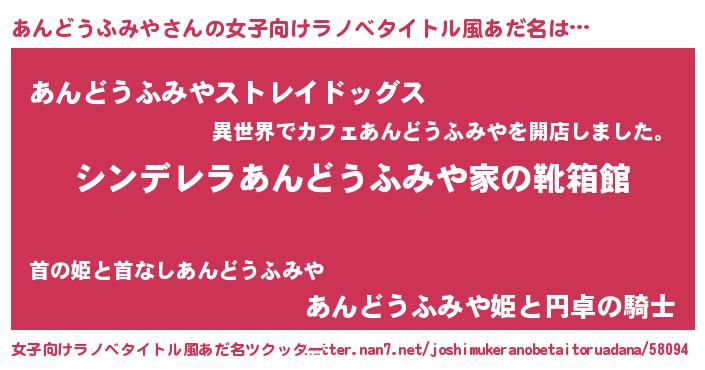 | 男性向けラノベタイトル風あだ名 | 『緋弾のアンドウフミヤ』 |