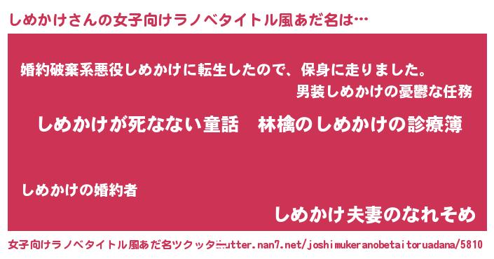 | ヒーロー風カッコイイあだ名 | 『仮面シメダー』『正義の使者しめかけ』 |