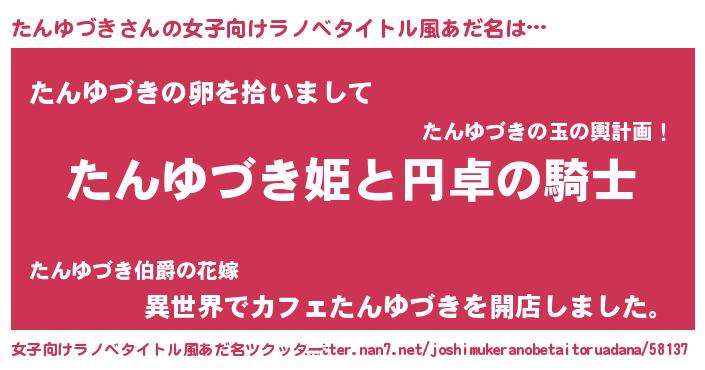 | 男性向けラノベタイトル風あだ名 | 『タンユヅキアートオンライン』 |