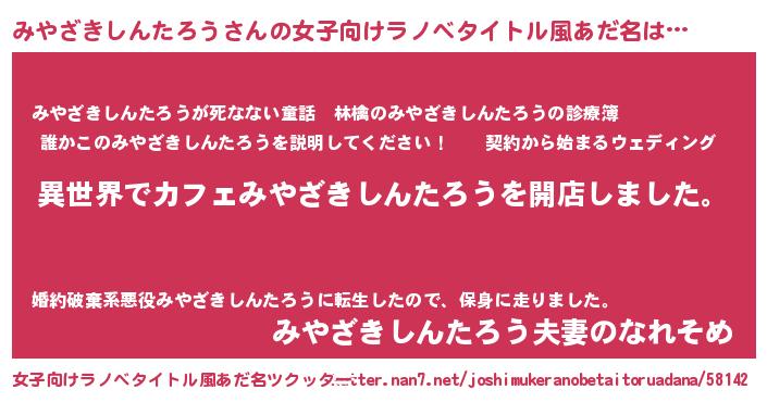 | ヘコむあだ名 | 『みやざきしんたろう(爆)』『みやにー』 |