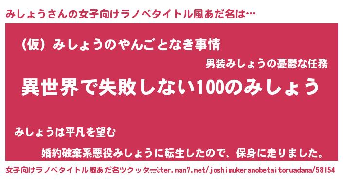 | 意味不明あだ名 | 『永久保存みしょう』『ペロリンみしょう』 |