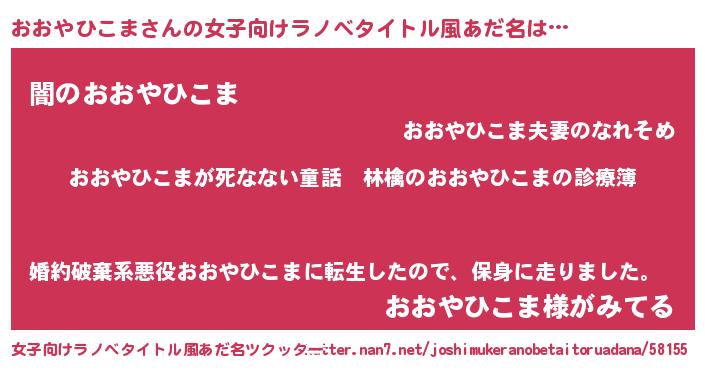 | 意味不明あだ名 | 『住所不定無職おおやひこま(89歳)』 |