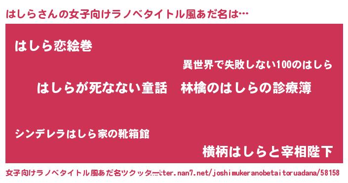 | ヘコむあだ名 | 『はしら(苦笑)』『はしにー』『豆乳』 |