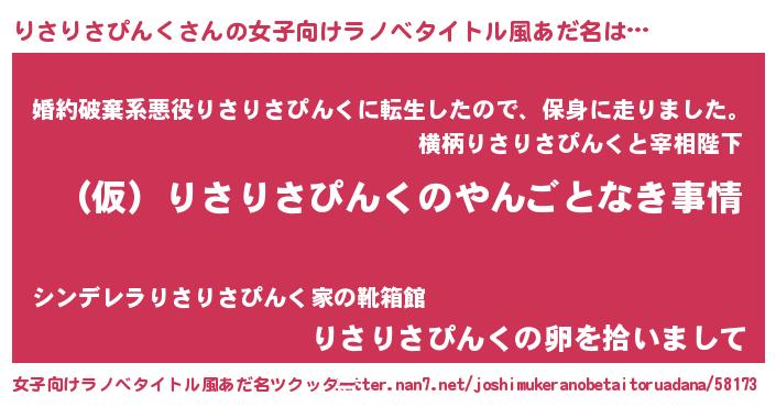 | 男性向けラノベタイトル風あだ名 | 『りさりさぴんくの憂鬱』 |