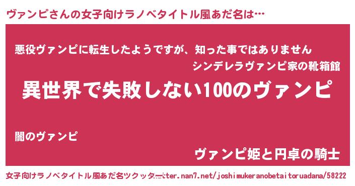 | 胡散臭い通販商品みたいなあだ名 | 『絶対に幸福をもたらす健康食品…その名も「ヴァンピ」』 |