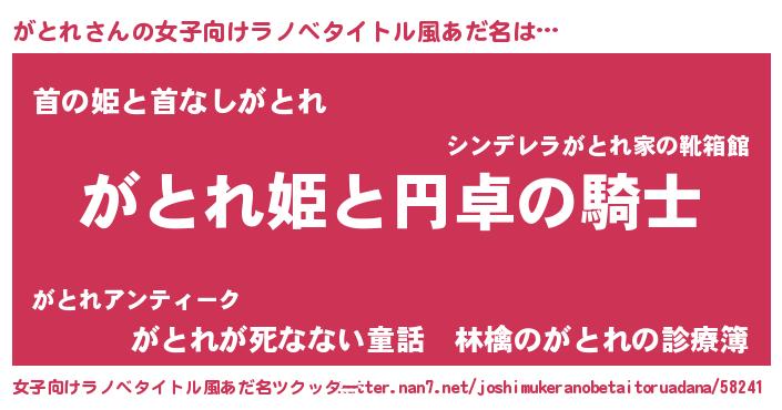 | 男性向けラノベタイトル風あだ名 | 『がとれの憂鬱』『はたらくがとれさま!』 |