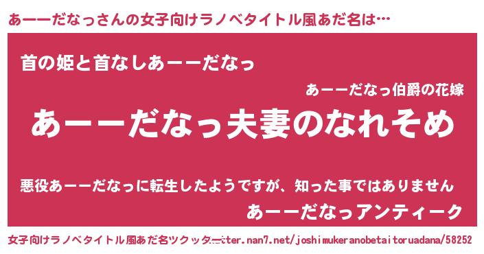 | 男性向けラノベタイトル風あだ名 | 『おまえをオタクにしてやるから、俺をあーーだなっにしてくれ! 』 |