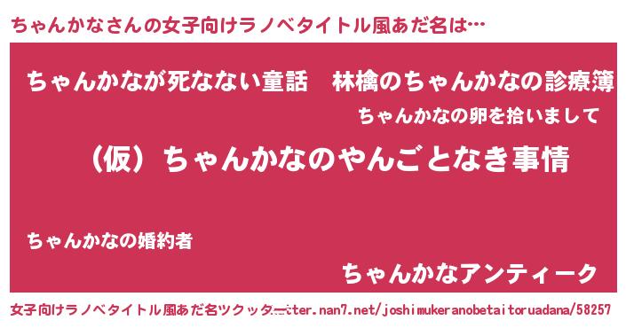 | 男性向けラノベタイトル風あだ名 | 『ちゃんかなの憂鬱』 |