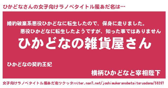 | 男性向けラノベタイトル風あだ名 | 『やはりひかどなの青春ラブコメはまちがっている 』 |