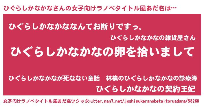| 男性向けラノベタイトル風あだ名 | 『ひぐらしかなかなの嫁は女の子じゃないと思った?』 |