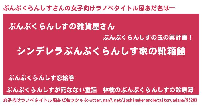 | 意味不明あだ名 | 『ぶんぷくらんしすフォーエバー』 |