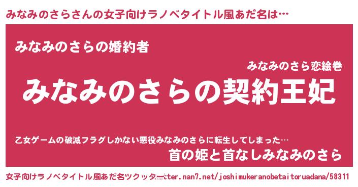 | 男性向けラノベタイトル風あだ名 | 『みなみのさらという概念が存在しない退屈な世界 』 |