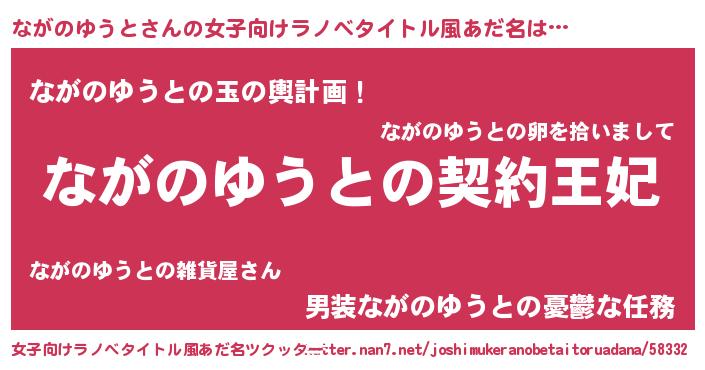 | 男性向けラノベタイトル風あだ名 | 『ながのゆうとという概念が存在しない退屈な世界 』 |