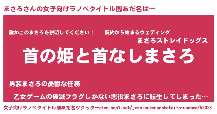 | 男性向けラノベタイトル風あだ名 | 『はたらくまさろさま!』 |