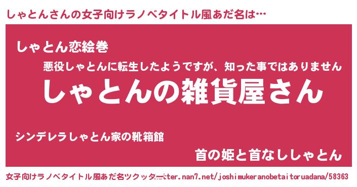 | 男性向けラノベタイトル風あだ名 | 『やはりしゃとんの青春ラブコメはまちがっている 』 |