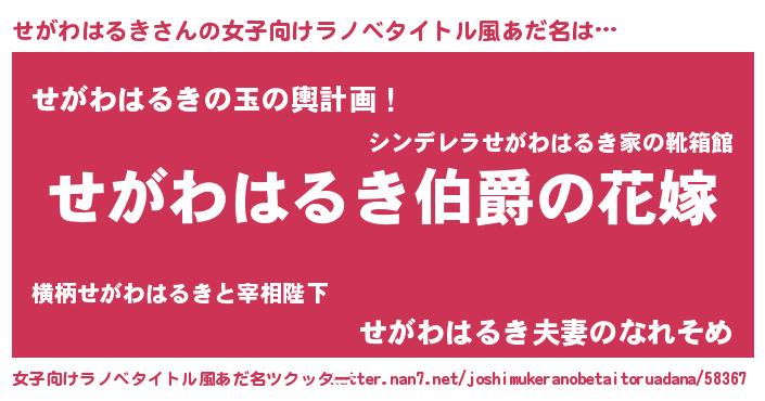 | 意味不明あだ名 | 『せがわはるきフォーエバー』 |
