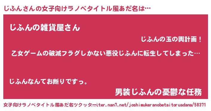 | 男性向けラノベタイトル風あだ名 | 『魔弾の王とじふん』 |