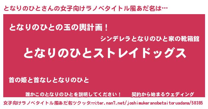 | 男性向けラノベタイトル風あだ名 | 『Re:となりのひとから始める異世界生活』 |