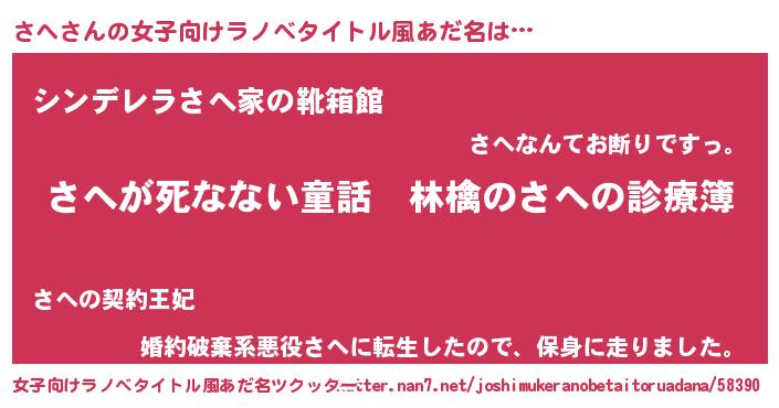 | 男性向けラノベタイトル風あだ名 | 『魔弾の王とさへ』『魔法科高校のさへ』 |
