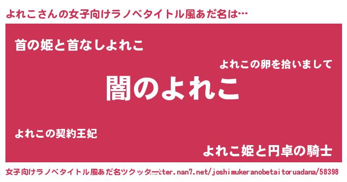 | 男性向けラノベタイトル風あだ名 | 『Re:よれこから始める異世界生活』 |