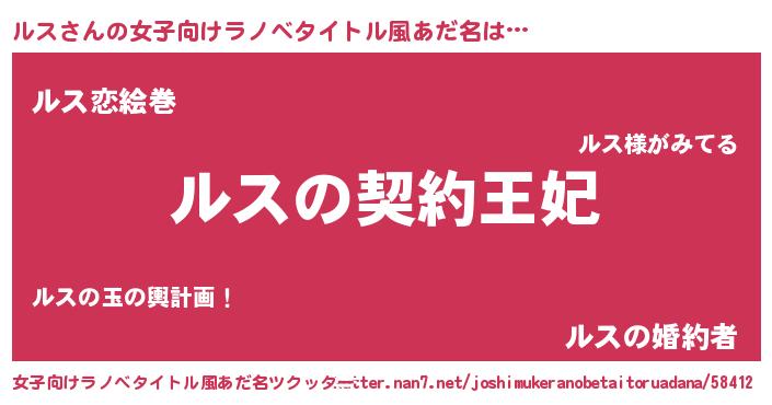 | 胡散臭い通販商品みたいなあだ名 | 『来世でも幸せになれる健康食品…その名も「ルス」』 |