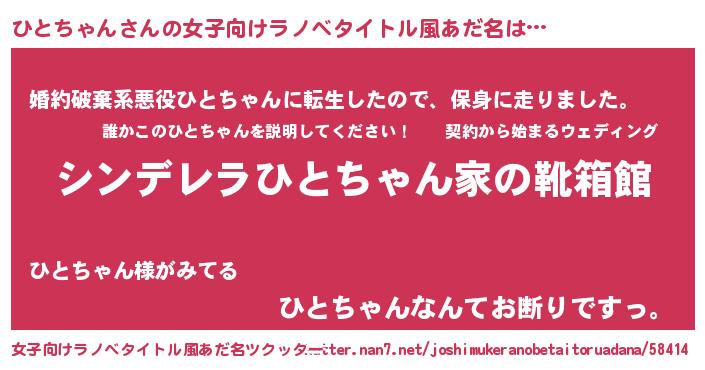 | 胡散臭い通販商品みたいなあだ名 | 『テレビで話題のアガリクス…その名も「ひとちゃん」』 |