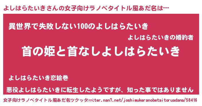 | 男性向けラノベタイトル風あだ名 | 『はたらくよしはらたいきさま!』 |