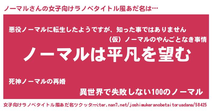 | 男性向けラノベタイトル風あだ名 | 『ダンジョンにノーマルを求めるのは間違っているだろうか』 |