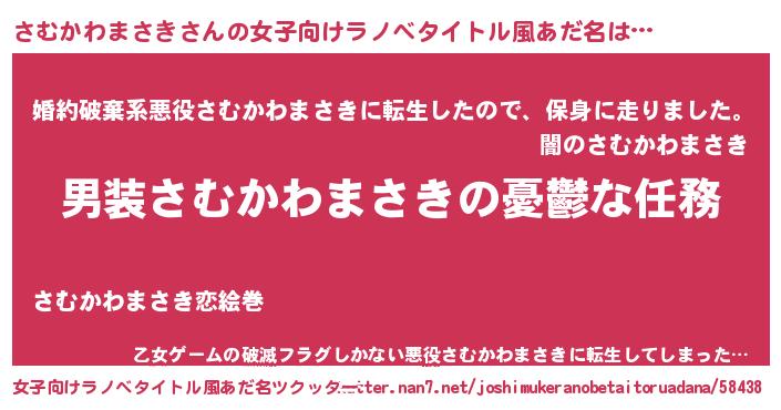 | 胡散臭い通販商品みたいなあだ名 | 『あなたにだけ特別に提供する世界で10本だけ現存している希少なブランデー…その名も「さむかわまさき」』 |