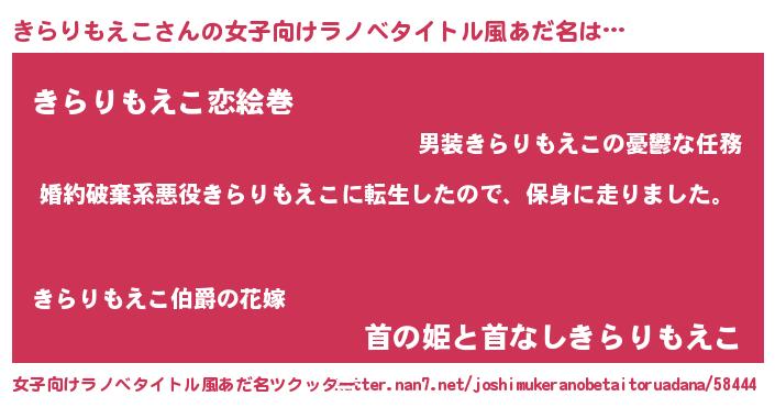 | ヒーロー風カッコイイあだ名 | 『正義の使者きらりもえこ』 |