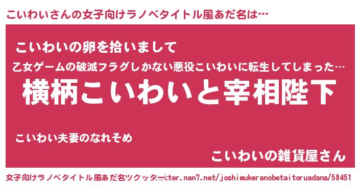 | 胡散臭い通販商品みたいなあだ名 | 『伝統あるサプリメント…その名も「こいわい」』 |