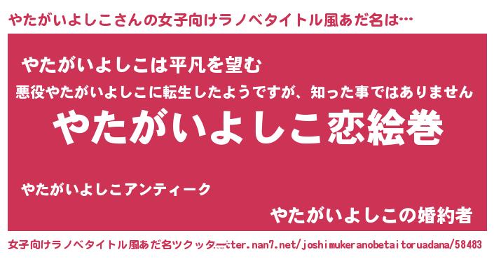 | 胡散臭い通販商品みたいなあだ名 | 『お金では代えられない隕石のかけら…その名も「やたがいよしこ」』 |