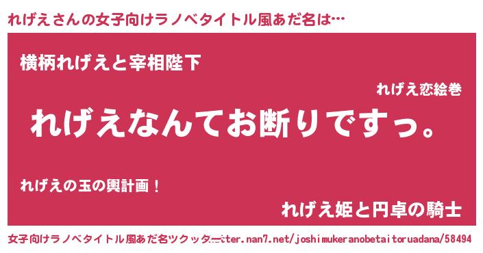 | ヘコむあだ名 | 『れげにゅー』『れげえ(爆)』『豆乳』 |