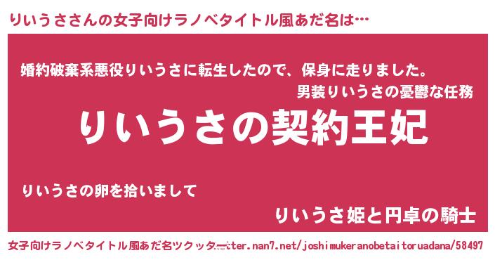 | 胡散臭い通販商品みたいなあだ名 | 『来世でも幸せになれる健康食品…その名も「りいうさ」』 |